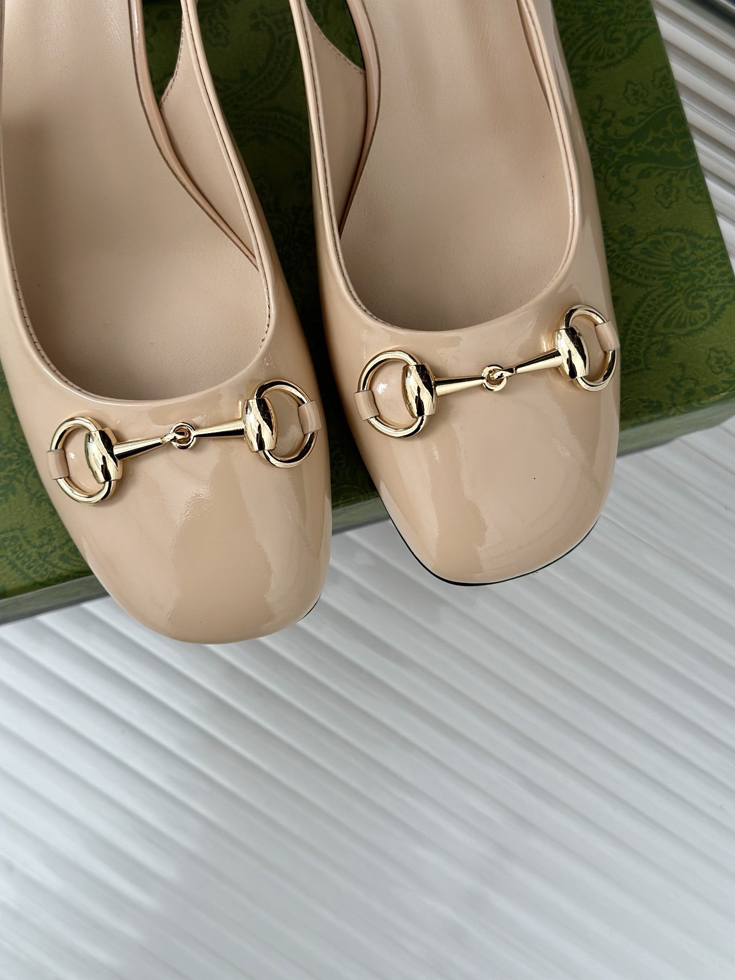 - Patent leather- Light gold-toned hardware- Horsebit- Rounded toe- Leather sole- Adjustable ankle buckle closure- Height: 7.5 cmCome with Gucci dust bag, box and certificate card.