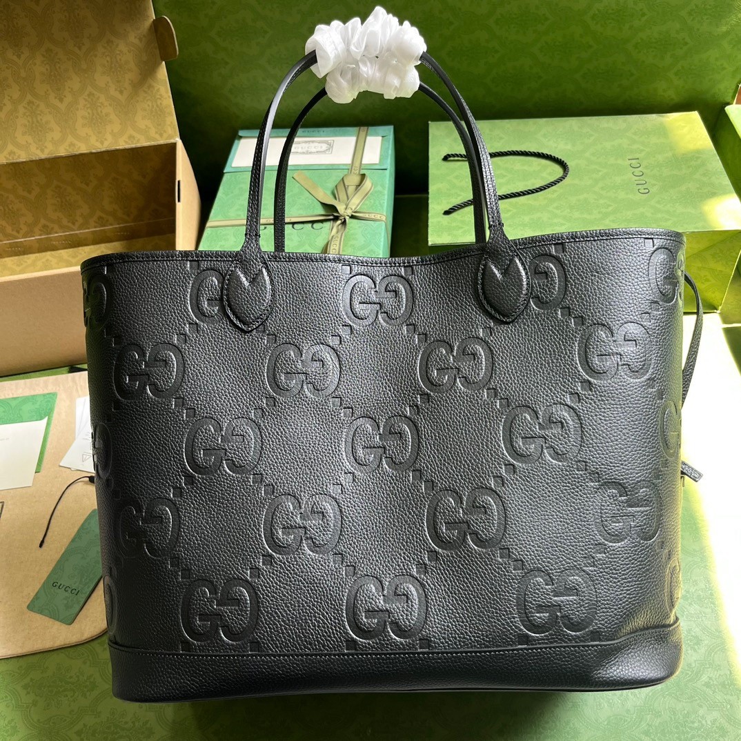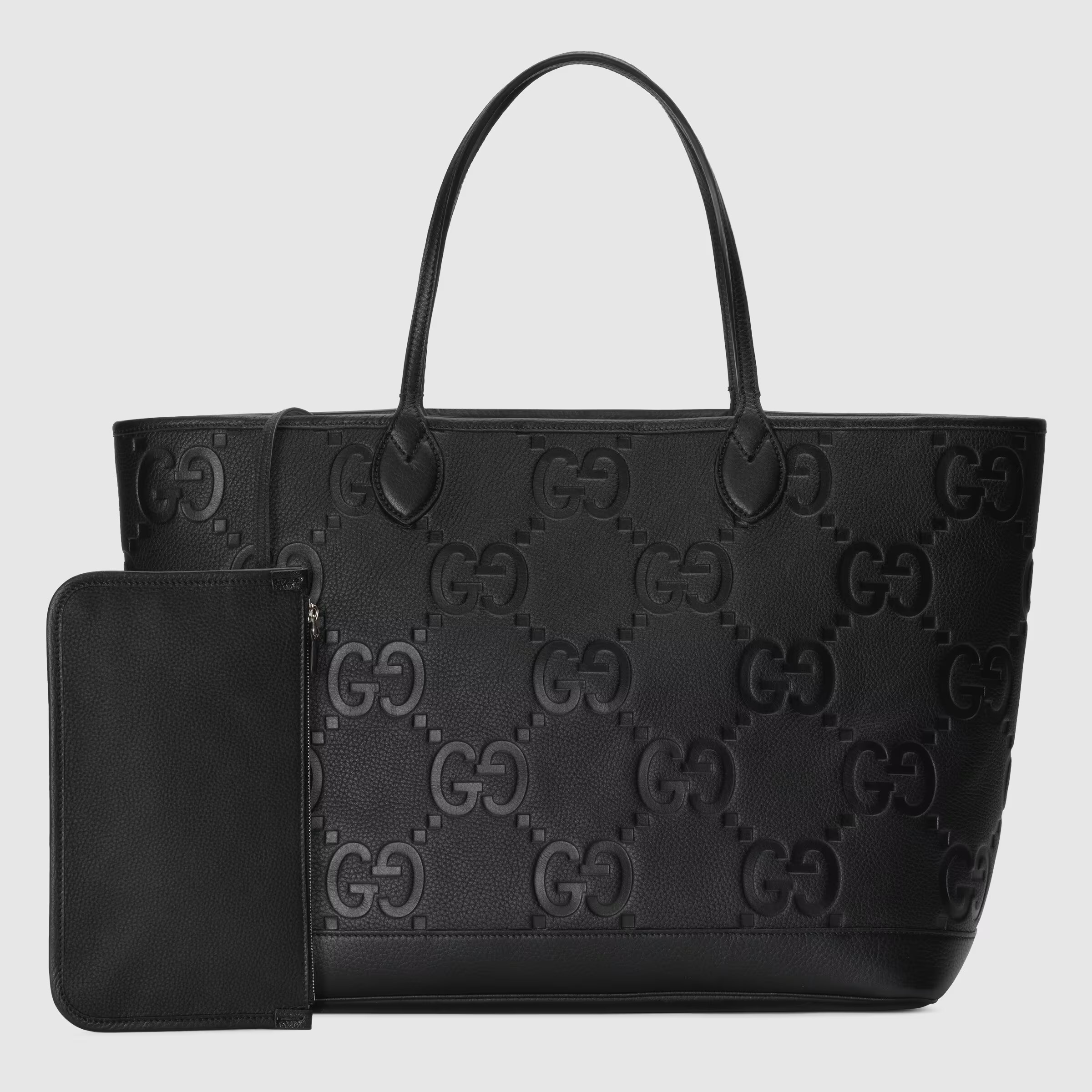 - Black jumbo GG leather- Cotton linen lining- Inside: 1 zip pouch- Handle with 8.3" dropSize: 15.7 x 13 x 7.5 inchesCome with Gucci dust bag and certificate card.