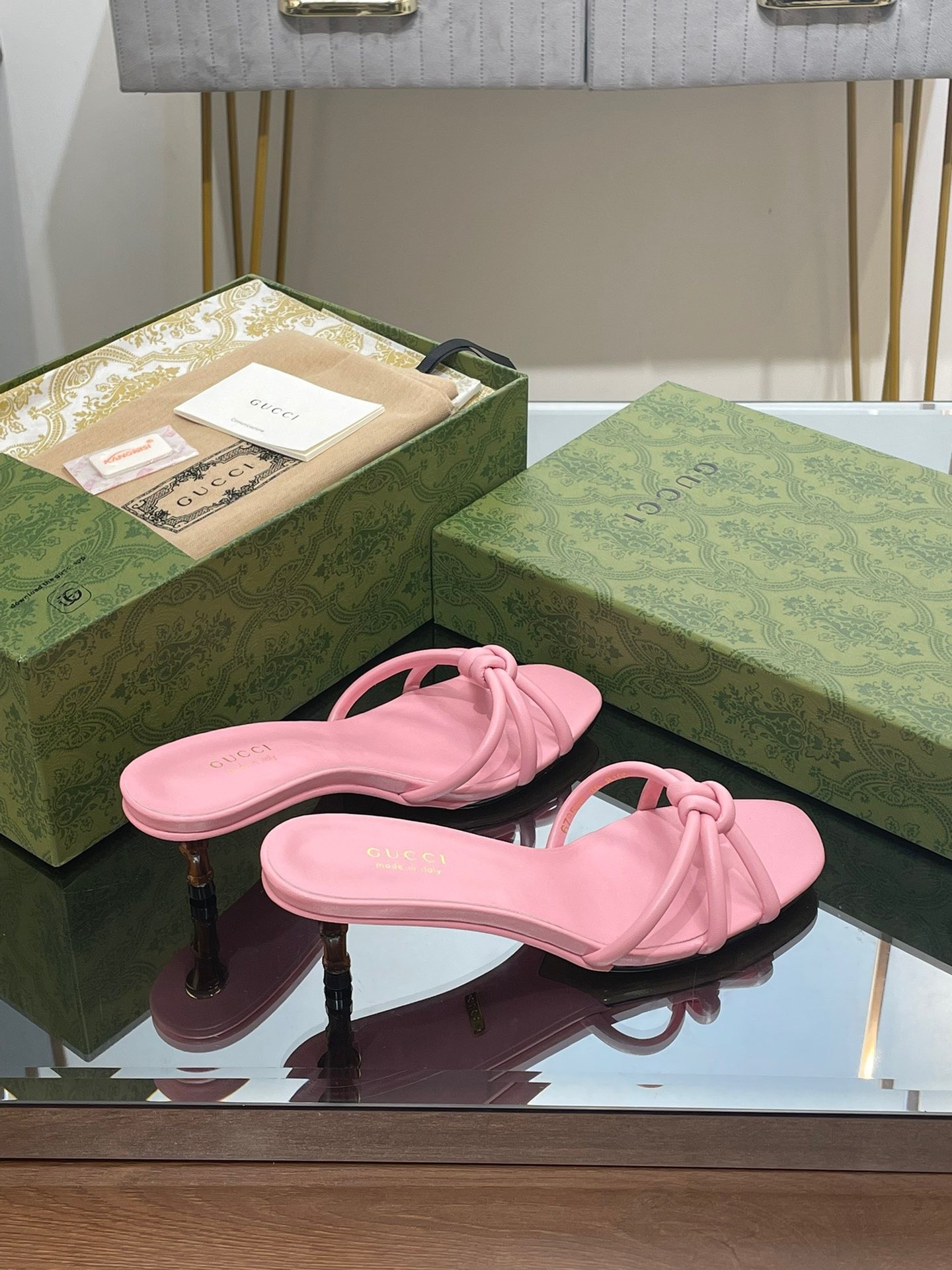 - Calfskin leather- Bamboo heel- Knot detail on the front- 4.5 cm heel height- For womenCome with Gucci dust bag, box and certificate card.