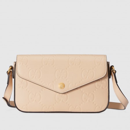 - GG leather- Cotton linen lining- Inside: 1 leather open pocket- Adjustable shoulder strap with 19.7" drop- Magnetic closureSize: 8.3 x 5.3 x 1.2 inchesCome with Gucci dust bag and certificate card.