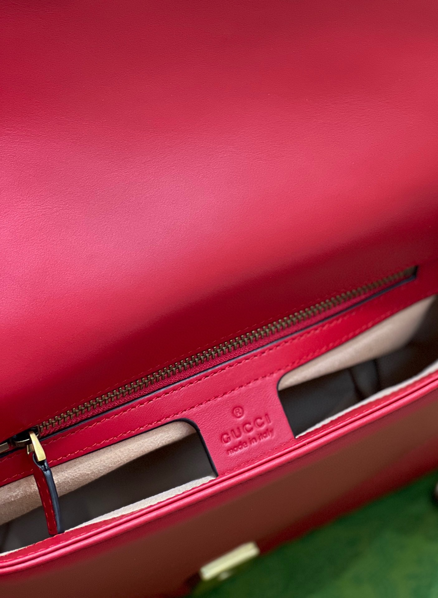 In soft matelasse leather with a chevron pattern, this GG Marmont top handle bag is defined by the emblematic Double G, an evolution of a belt buckle from the archives of the 1970s. Equipped with a detachable chain strap with leather detail, the bag can be carried in multiple ways and on the back is completed with a quilted heart, a reference to the romanticism of Gucci's creations.